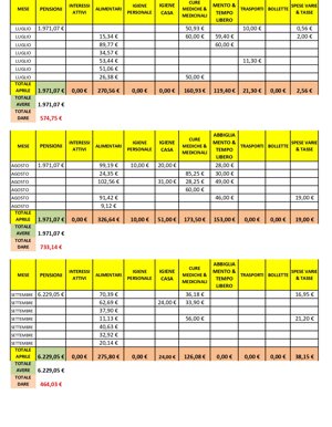 RENDICONTAZIONE SPESE PER MENSILITA' DI RIFERIMENTO